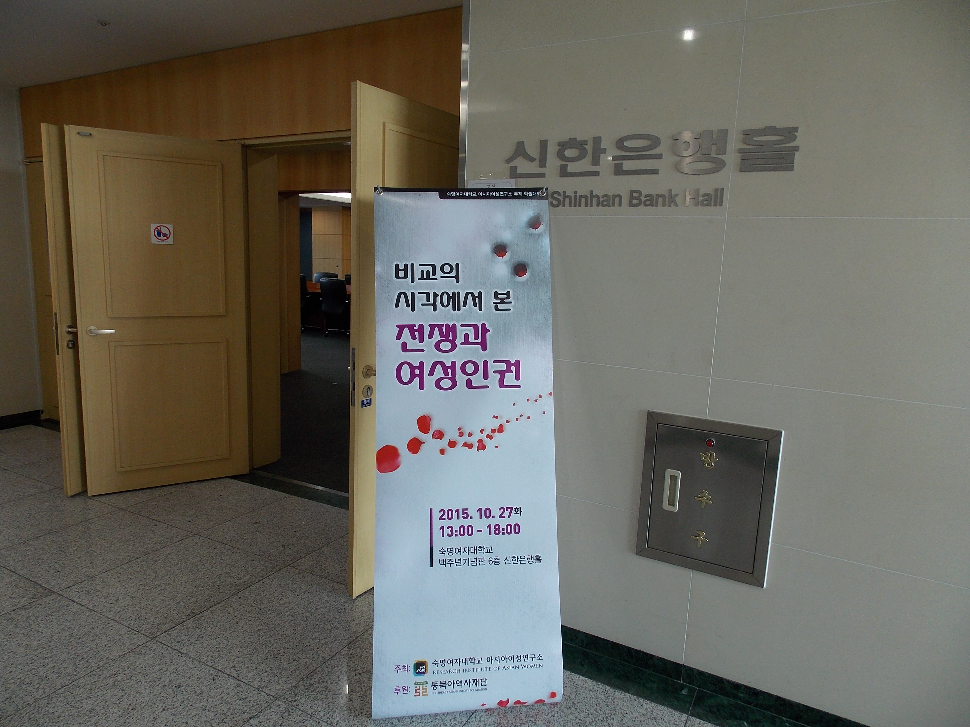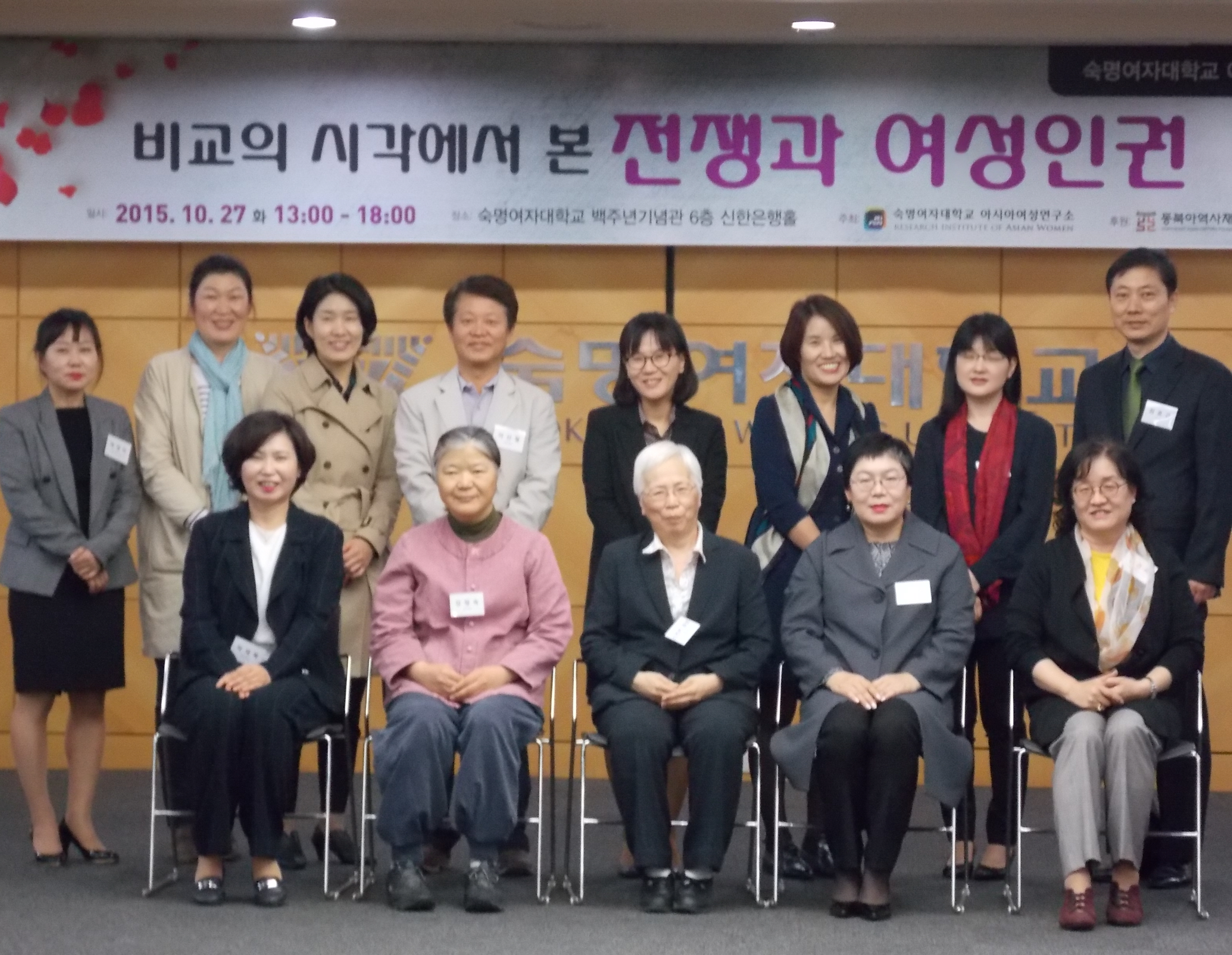 * 주 제 : 비교의 시각에서 본 전쟁과 여성인권* 주 최 : 아시아여성연구소* 후 원 : 동북아역사재단 * 일 시 : 2015년 10월 27일(화) 오후 1시* 장 소 : 숙명여자대학교 백주년기념관 신한은행홀(601호)