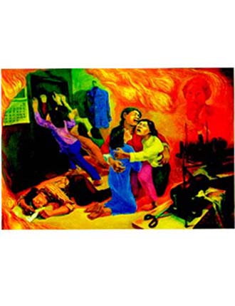 그린힐 화재를 생각하면 지금도 가슴이 아파온다. 88년 3월 25일 안양에 있는 그린힐이라는 섬유봉재공장에서 불이나서 기숙사에서 잠을 자던 어린 여성노동자 28명중 22명이 그 자리에서 불타 죽은 것이다. 불이나자 그녀들은 출입구쪽으로 몰려 나왔다가 철재셔터문이 잠겨있어서 2미터 높이의 좀은 세면장 환기창으로 다섯명만 탈출하고 나머지는 서로 부둥켜안은채 케시미론 원단이 내뿜는 유독가스에 질식해 죽어간 것이다. 22명의 여성노동자들은 14살의 이미영양을 포함하여 대부분 19살 에서 이십대 초반의 나이로 초임 13만원을 받으며 어려운 가족을 한푼이라도 도우려고 집을 떠나와 매일매일 아홉시, 열시까지 일하고 기숙사에서 잠자고 생활하였다. 당시 정권이 88올림픽을 유치하여 선진국 대열에 들어선 듯 모든 국민들을 흥분케 만든 이면에 그녀들은 산업수출역군이라는 근사한 대의명분과 더불어 밤이면 기숙사 출입구가 열쇠로 잠기는 반감금 상태의 대접을 받고 있었다.