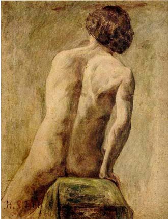 파리의 미술연구소에 나가면서 야수파에 많은 영향을 받았다. 뒤로 돌아 앉은 이 누드 작품은 아마도 파리 연구소에서 모델을 그린것으로 믿어지는데 색다른 포오즈와 차분한 색조, 분위기 및 충실한 대상파악이 돋보이는 작품이다. 나혜석작품에 등장하는 나부는 항상 중심적인 위치에 놓여있고 주된 주제로 다루어지고 있다. 나혜석은 누드화를 통해 여성으로서 당당하고 능동적이고 진취적인 여성상을 제시하였다.