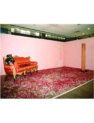 Pink는 여성을 상징하는 색이면서 동시에 불안을 내포하는 색이며, Sofa는 흔히 일반적인 가정에서 선호하는 모양의 의자로서 서양스타일과 한국의 비단을 상징하는 천을 사용하여 여성의 어떤형태의 욕망과 그 제어할 수 없는 욕망의 억제에서 오는 불안심리를 상징적으로 표현하였다.