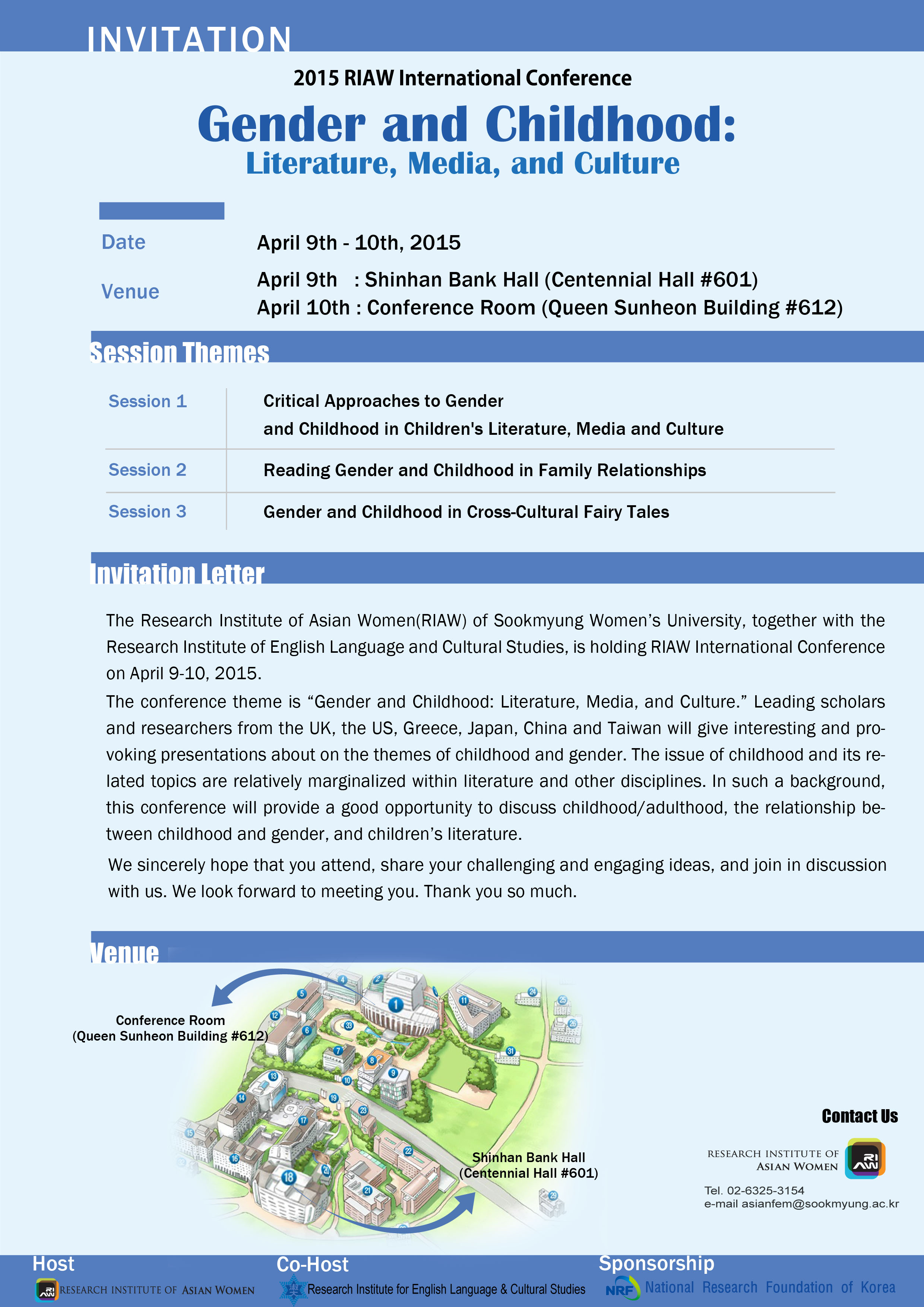 ♦Venue : Shinhan Bank Hall(Centennial Hall #601)