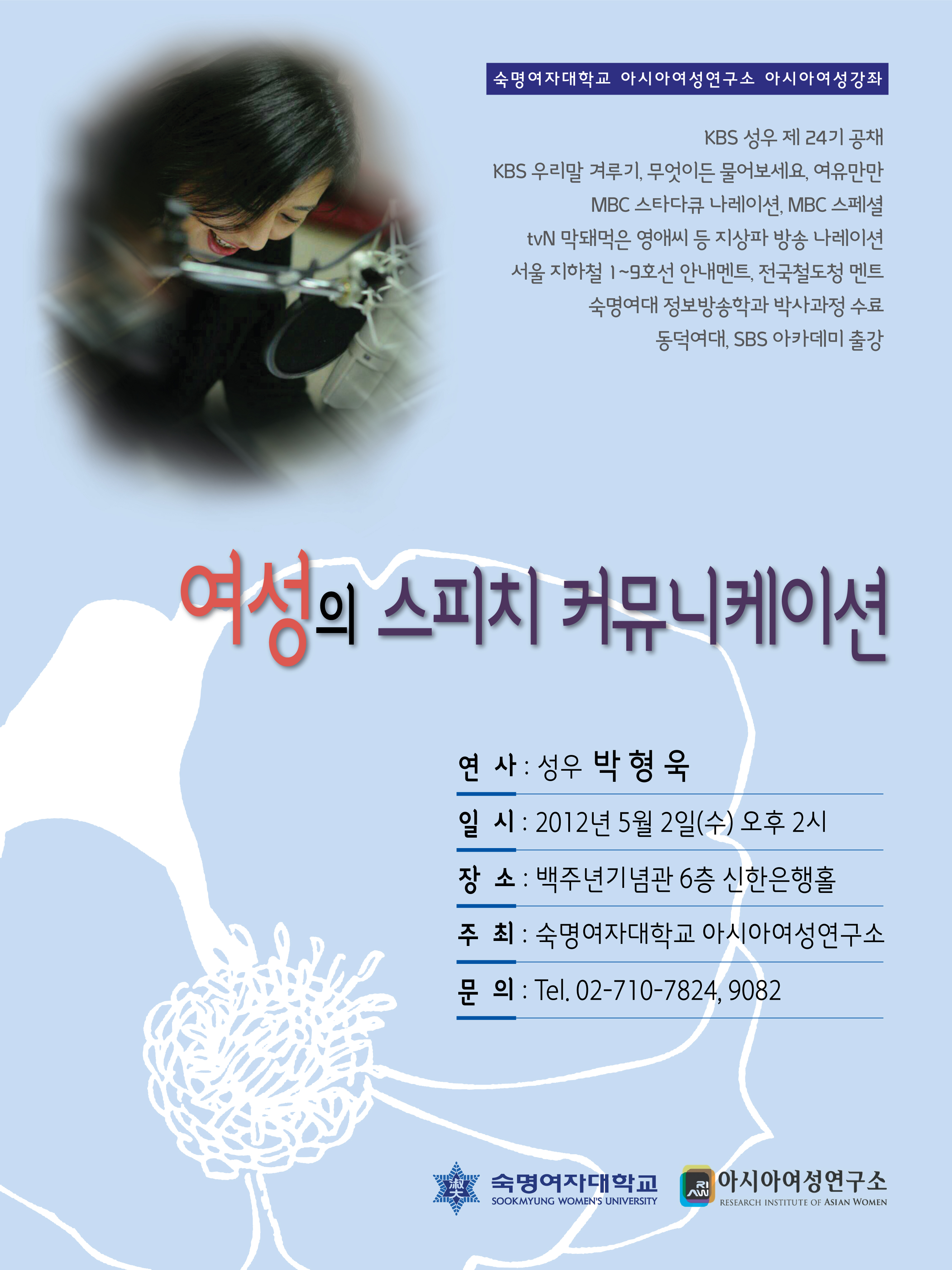 강연을 개최하고자 합니다. 성우 박형욱씨는 KBS우리말 겨루기, 무엇이든 물어보세요, 여유만만 등