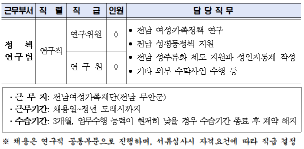 2021 전남여성가족재단 연구직 채용 공고(마감)