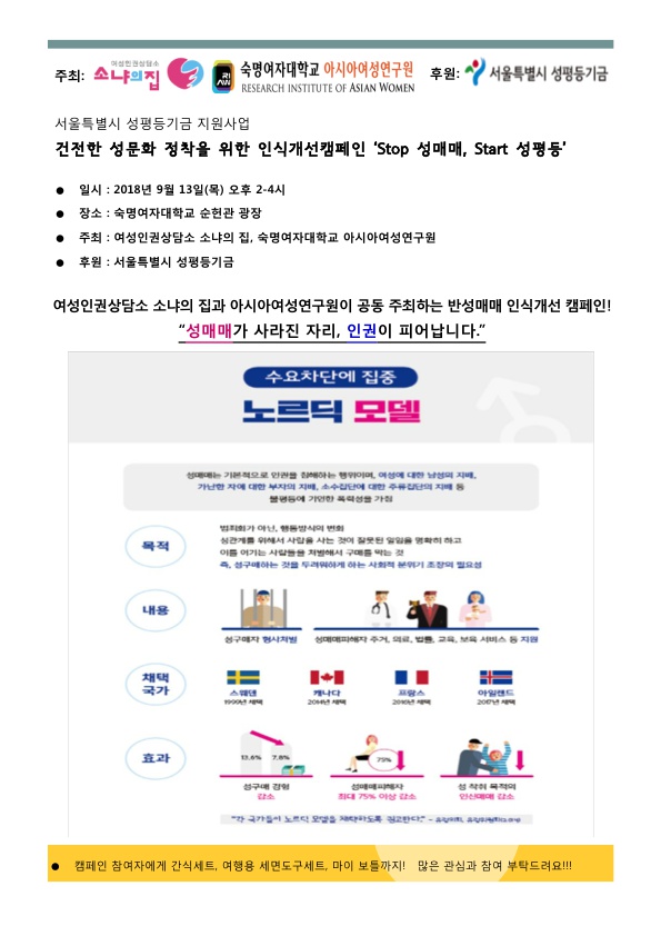 여성인권상담소 소냐의 집과 아시아여성연구원이 공동 주최하는 반성매매 인식개선 캠페인!