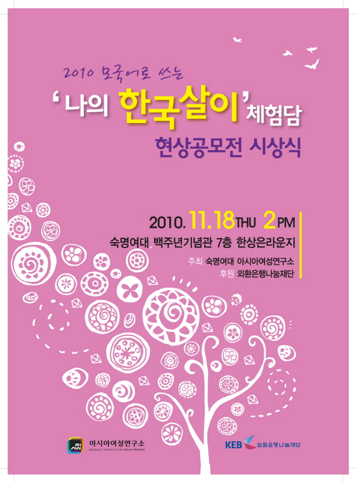2010 모국어로 쓰는 '나의 한국살이' 체험담 공모전 수상자 발표